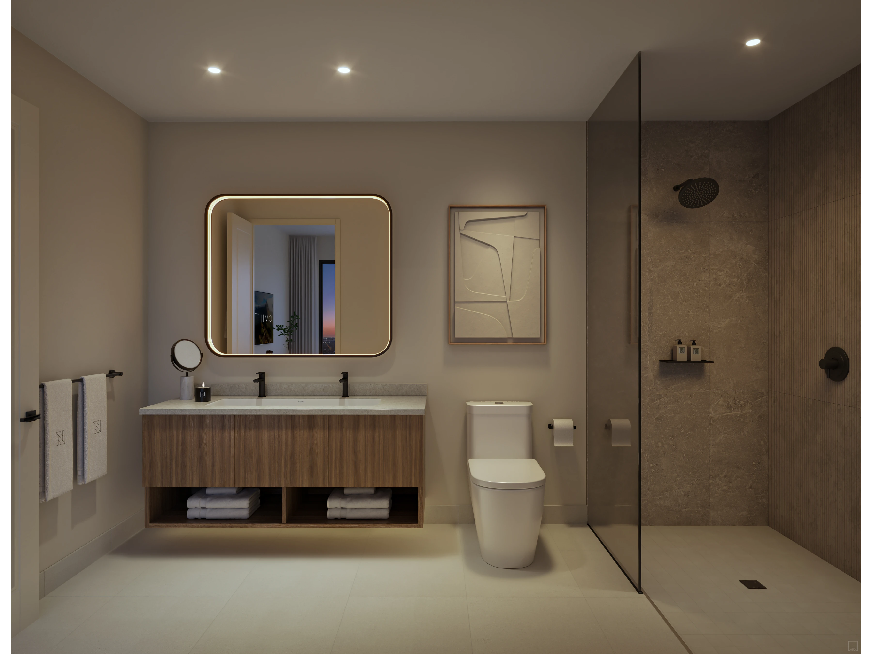 - Designer bathrooms with soaking tubs, glass showers, and full vanity mirrors