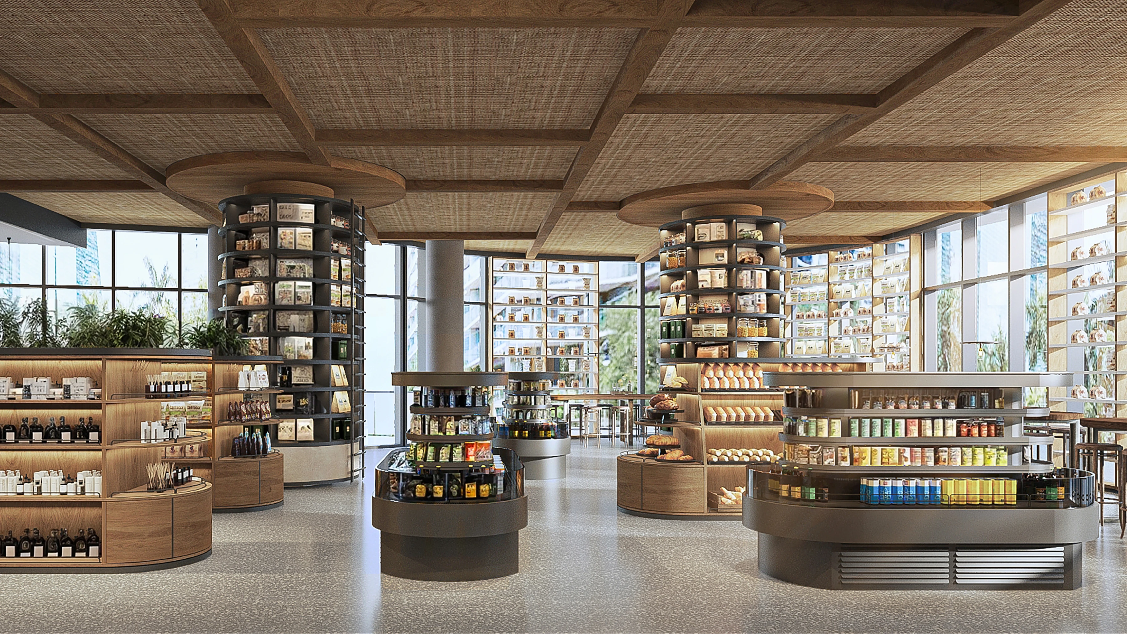 - Terra: A 24-hour gourmet market and bakery located in the lobby, offering fresh produce, house-made pastries, gourmet groceries, and light fare for residents and guests.