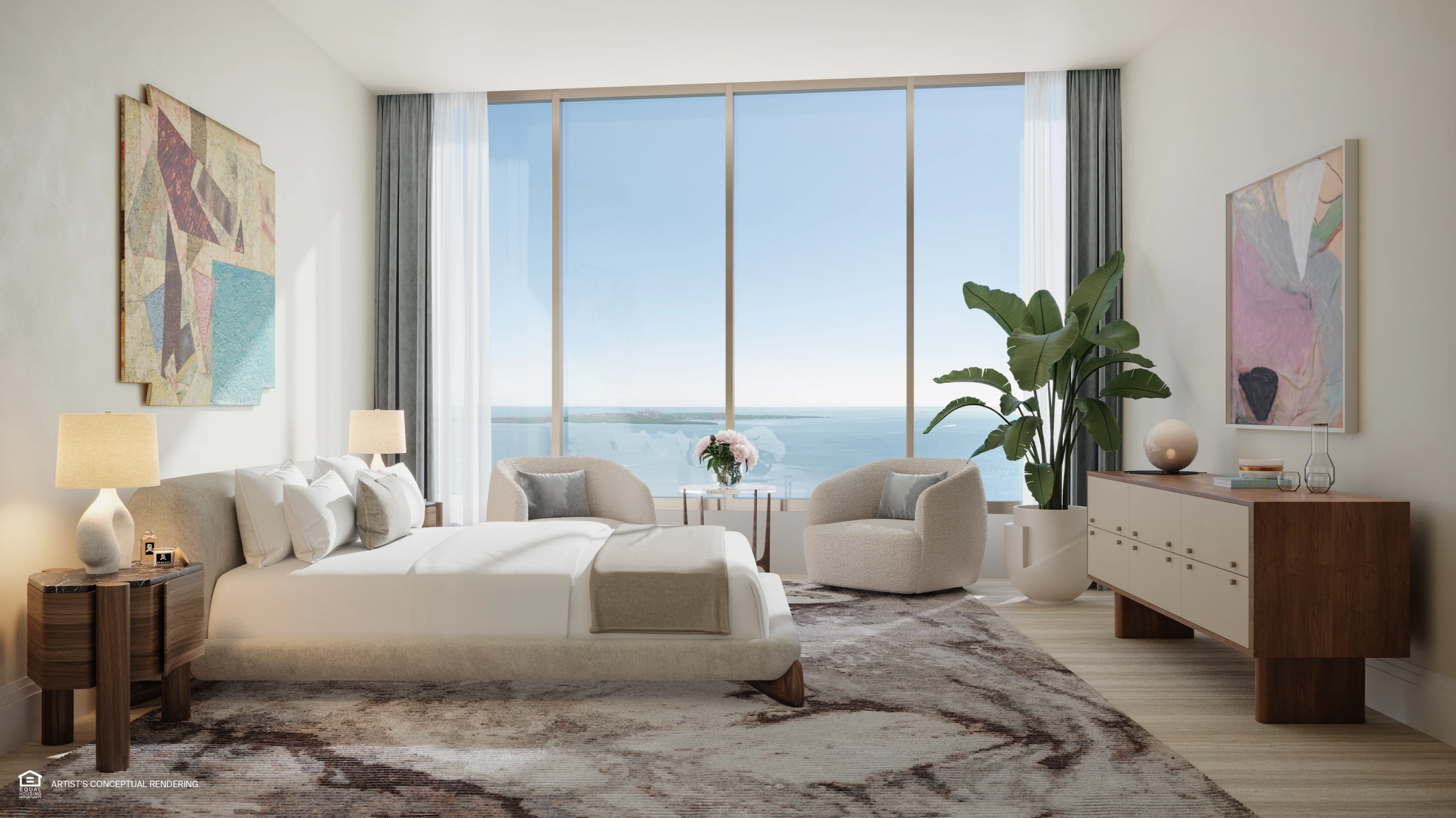 The St. Regis Residences, Miami are a collection of 152 exclusive homes rising along the Biscayne Bay coastline in South Brickell. Designed by Robert A.M. Stern Architects with interiors by Rockwell Group, this 50-story tower merges timeless architecture, elegant living, and five-star service into one of the city’s most anticipated developments. Each residence features private elevator access, soaring ceilings, curated finishes, and expansive bay views.