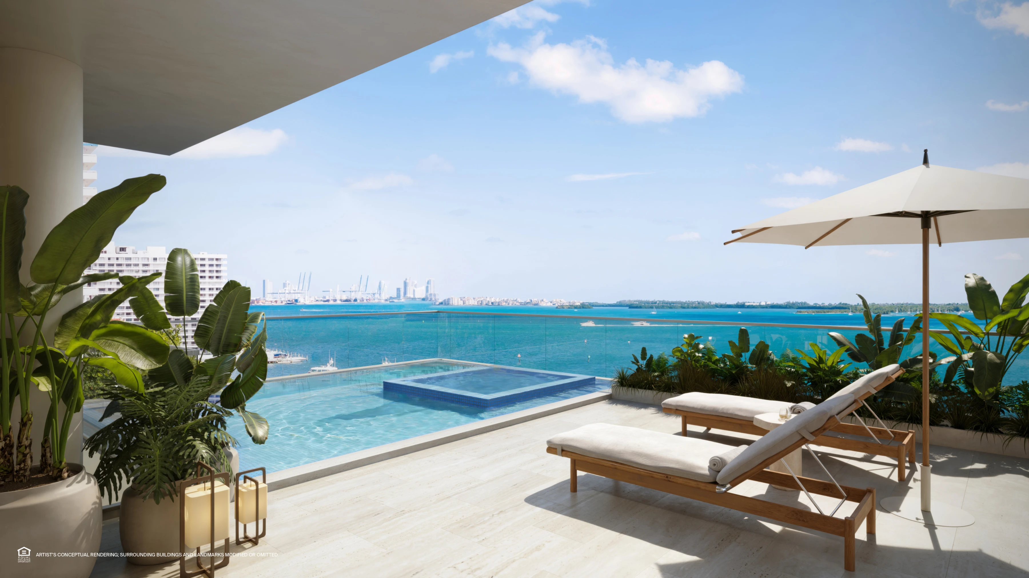 - Expansive terraces with panoramic bay views