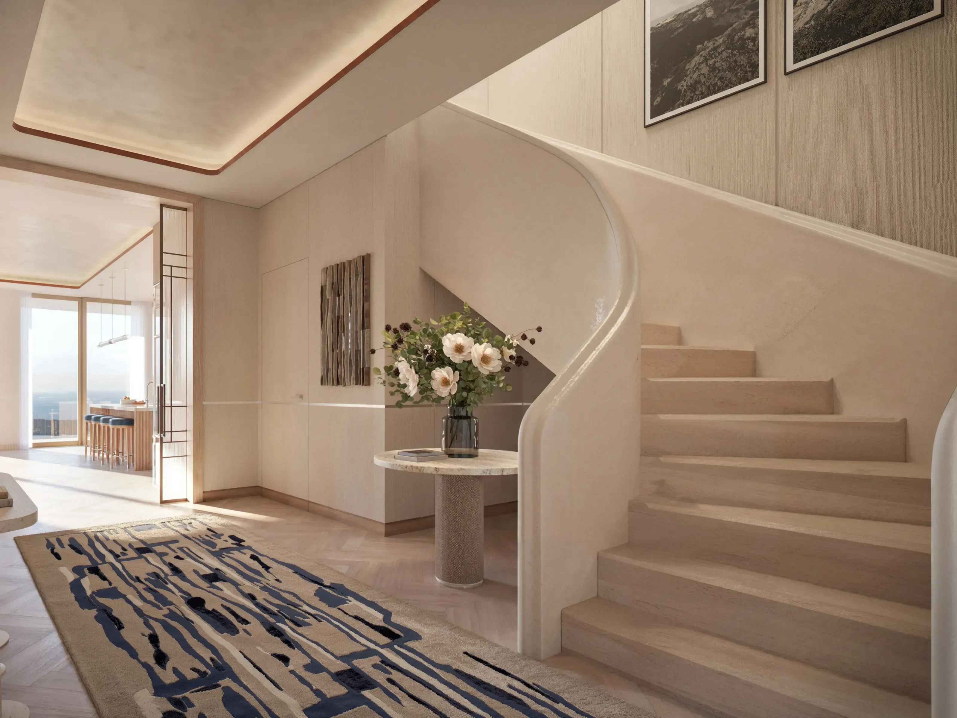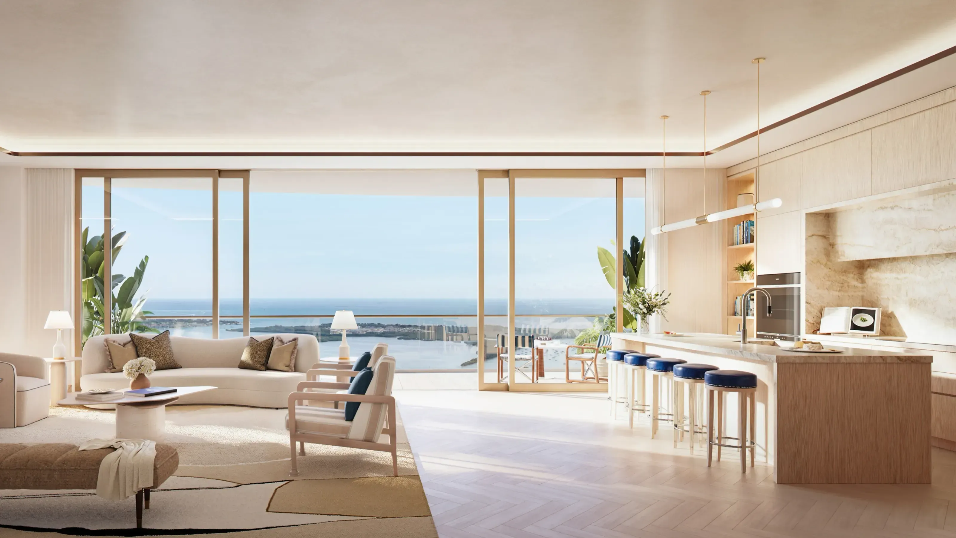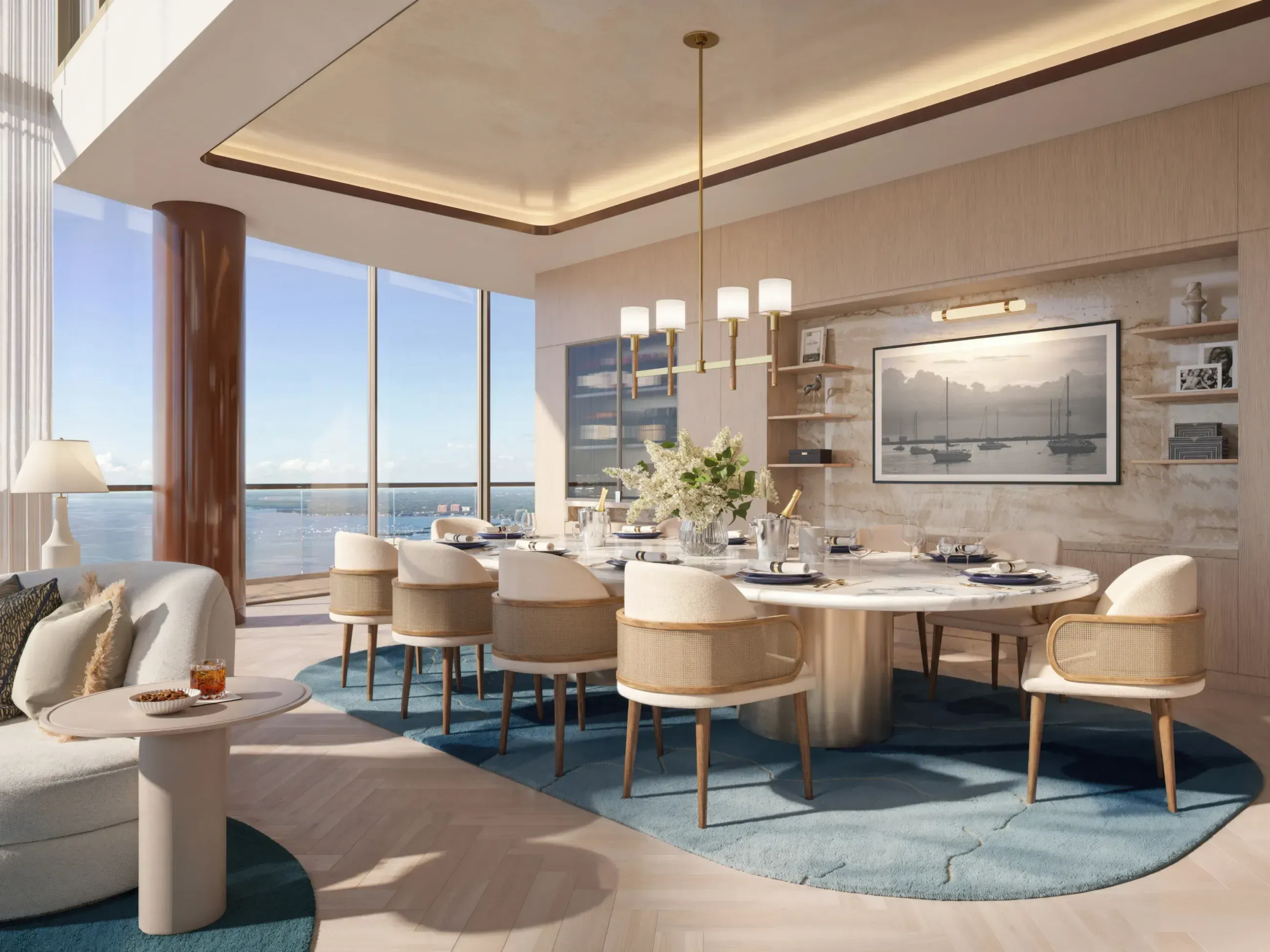 Las residencias van desde residencias de una habitación más estudio hasta residencias de cuatro habitaciones que varían en tamaño desde 1,194 pies cuadrados de interior con 757 pies cuadrados de exterior hasta más de 3,495 pies cuadrados de espacio interior y 1,053 pies cuadrados de espacio exterior. Además, cada residencia cuenta con amplias áreas de estar con techos de 10 pies de altura, puertas y ventanas corredizas de vidrio del piso al techo con magníficas vistas panorámicas y acceso a la terraza desde la sala de estar y el dormitorio principal de cada residencia.